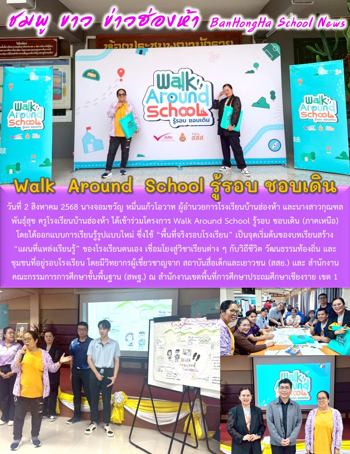 วันที่ 2 สิงหาคม 2568 นางจอมขวัญ หมื่นแก้วโอวาท ผู้อำนวยการโรงเรียนบ้านฮ่องห้า และนางสาวกุณฑล พันธุ์สุข ครูโรงเรียนบ้านฮ่องห้า ได้เข้าร่วมโครงการ Walk Around School รู้รอบ ชอบเดิน (ภาคเหนือ) โดยได้ออกแบบการเรียนรู้รูปแบบใหม่ ซึ่งใช้ "พื้นที่จริงรอบโรงเรียน" เป็นจุดเริ่มต้นของบทเรียนสร้าง "แผนที่แหล่งเรียนรู้" ของโรงเรียนตนเอง เชื่อมโยงสู่วิชาเรียนต่าง ๆ กับวิถีชีวิต วัฒนธรรมท้องถิ่น และ ชุมชนที่อยู่รอบโรงเรียน โดยมีวิทยากรผู้เชี่ยวชาญจาก สถาบันสื่อเด็กและเยาวชน (สสย.) และ สำนักงาน คณะกรรมการการศึกษาขั้นพื้นฐาน (สพฐ.) ณ สำนักงานเขตพื้นที่การศึกษาประถมศึกษาเชียงราย เขต 1